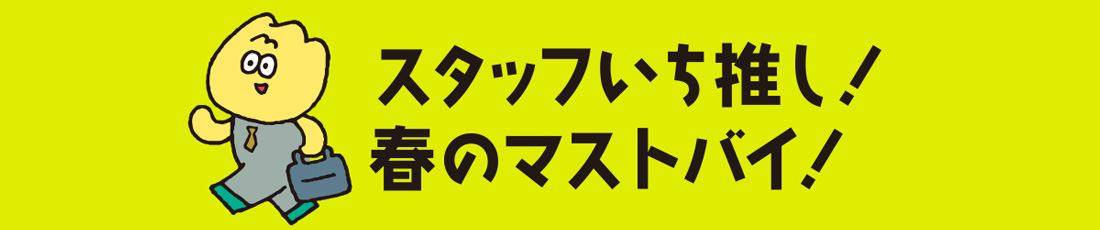| ●まいにち気分が上がる「春小物&生活雑貨」 ●スタッフいち推し!「春のマストバイ!」 ●どんなシーンもハマる「ほめられ手土産」 ●どうしよう!に応える「おたすけショップ」 |
